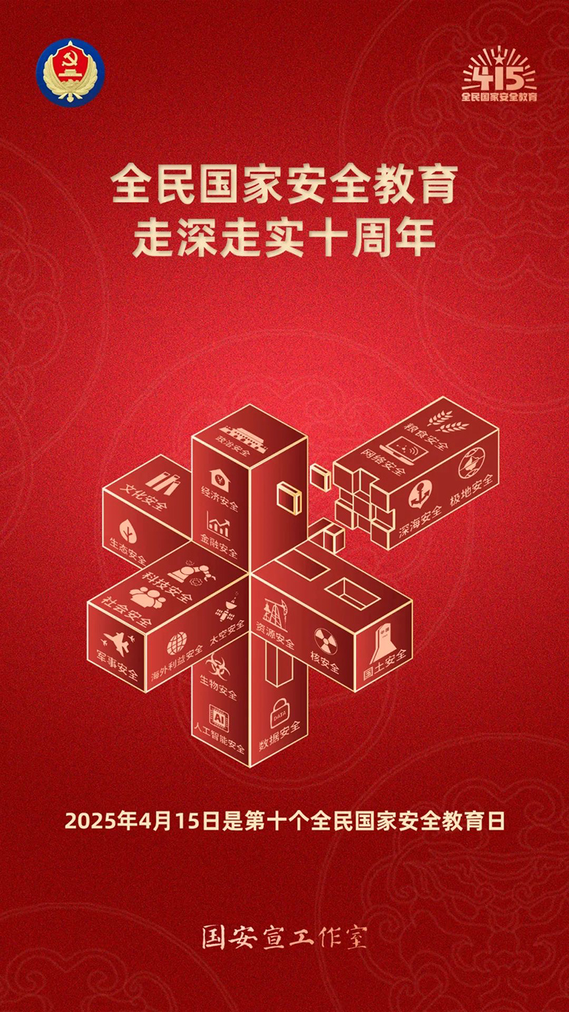 “4·15”全民國家安全教育日丨一起學習國家安全知識 更新時間:2025-04-15 點擊:1152 所屬欄目:公司新聞 2015年7月1日實施的《中華人民共和國國家安全法》第十四條規定:每年4月15日為全民國家安全教育日。 2025年4月15日是第十個全民國家安全教育日,今年的主題是:全民國家安全教育,走深走實十周年。下面我們一起學習相關知識吧!