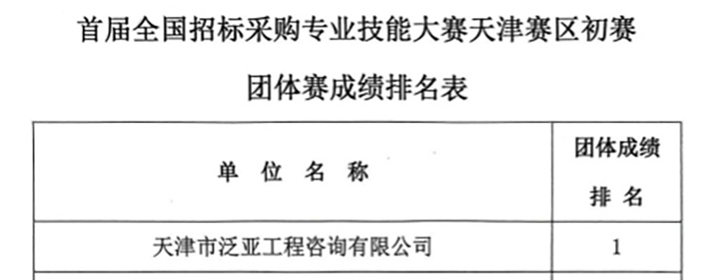 喜 報——泛亞咨詢斬獲首屆全國招標采購專業技能大賽 天津賽區團體及個人雙第一