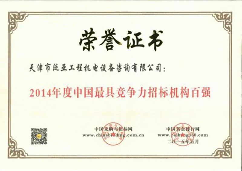2014年度中國(guó)最具競(jìng)爭(zhēng)力招標(biāo)機(jī)構(gòu)百?gòu)?qiáng) 更新時(shí)間:2021-09-23 點(diǎn)擊:1467 所屬欄目:資質(zhì)榮譽(yù)
