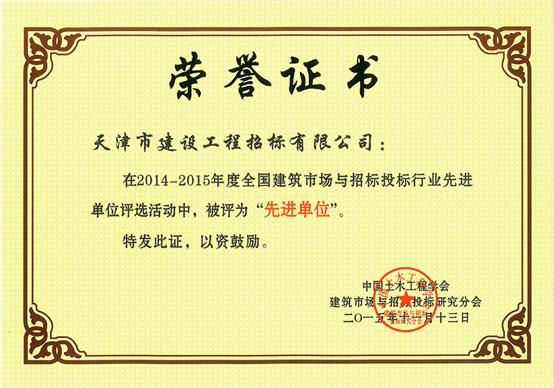 14-15年全國建筑市場與招標投標行業先進單位