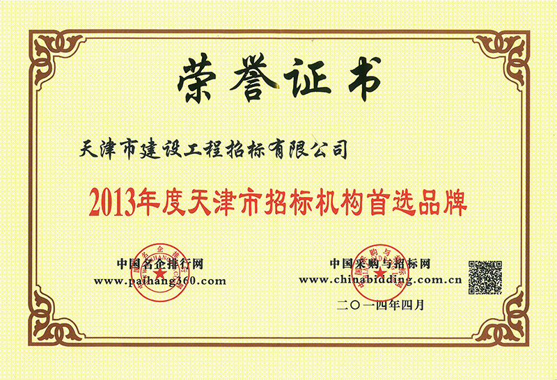 2013年度天津市招標(biāo)機(jī)構(gòu)首選品牌