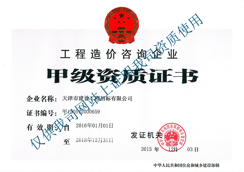 造價(jià)咨詢甲級(jí)資質(zhì)正本