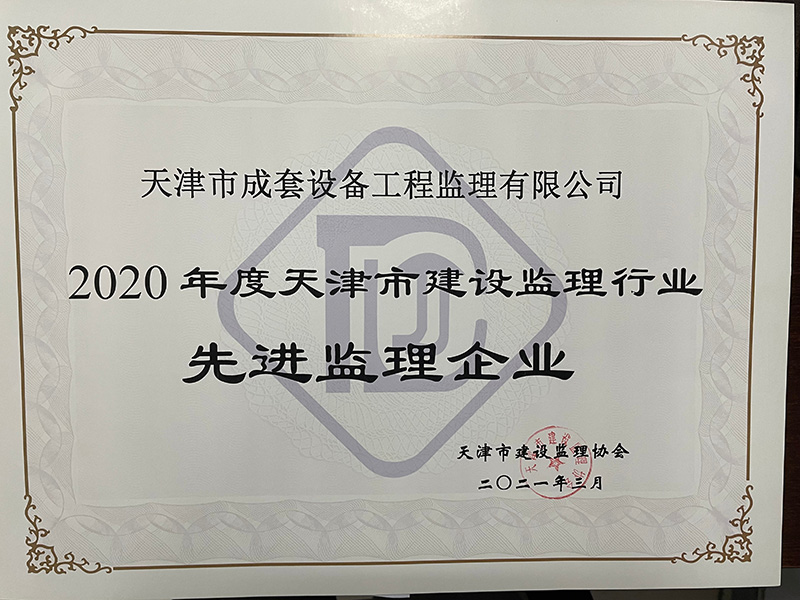 2020年度天津市建設監(jiān)理行業(yè)先進監(jiān)理企業(yè)