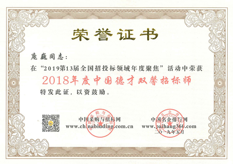龐巍 招標(biāo)師2018
