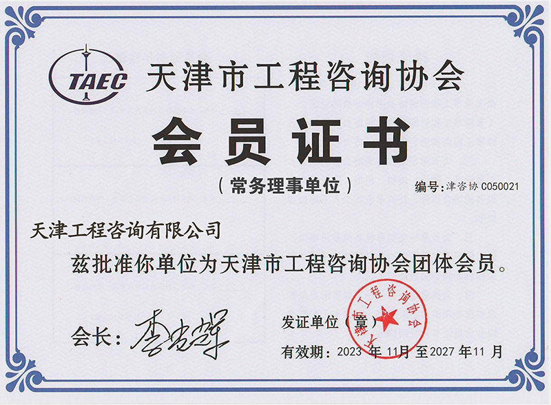 天津市工程咨詢協會會員證書