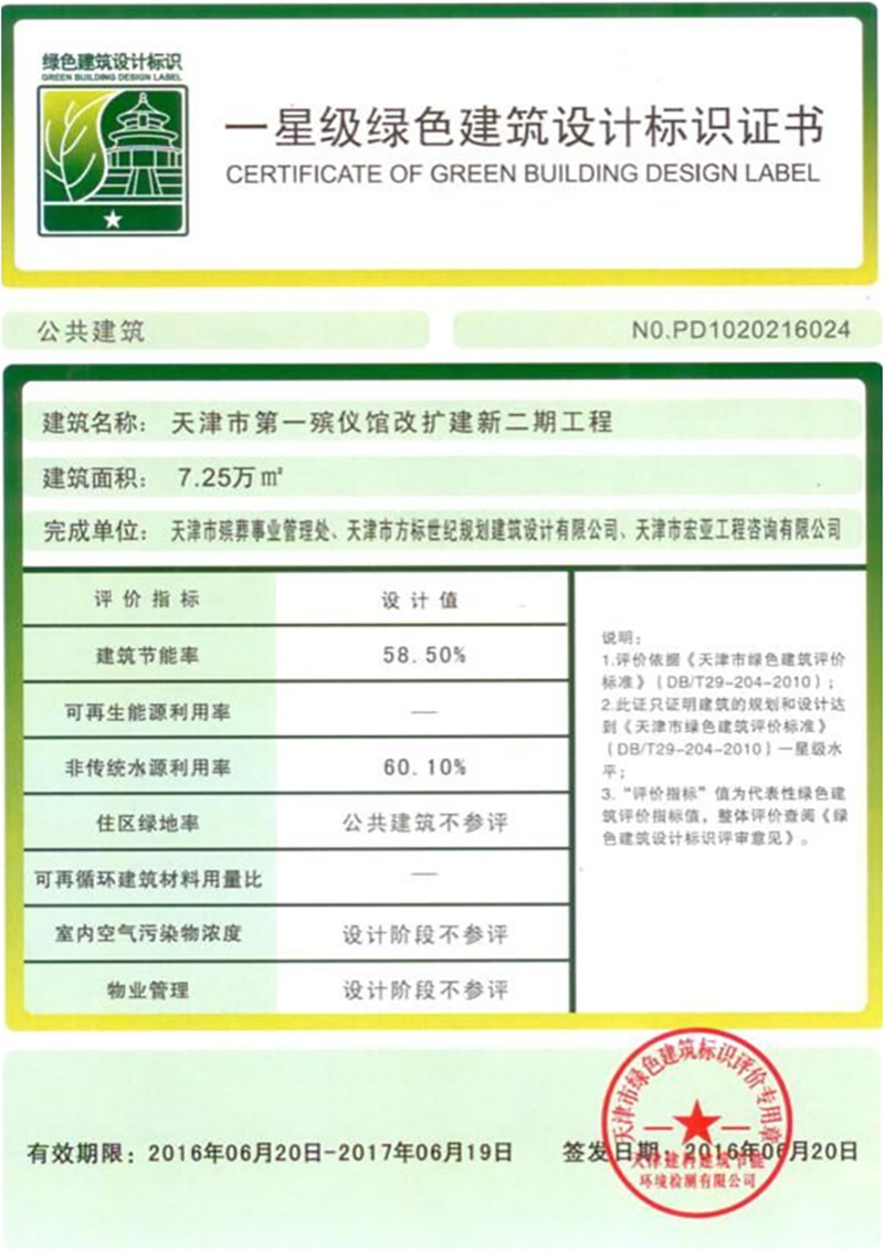 坐落在天津市北辰區(qū)鐵東路(第一殯儀館院內(nèi))。總投資約3.6億元,總建筑面積7.3萬(wàn)平米,地上兩層,地下一層,其中:地上5.3萬(wàn)平米,地下2萬(wàn)平米,框架結(jié)構(gòu),屬于天津市民心工程。該項(xiàng)目于2016年6月通過(guò)專家會(huì)評(píng)審,獲得國(guó)家一星級(jí)綠色建筑設(shè)計(jì)標(biāo)識(shí)。